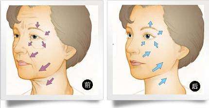 4、改善皮下软组织的松弛状态:以眉下垂、鼻唇沟加深、颈部松垂为特征;