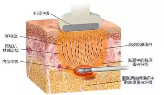 通过射频(RF)电流加热脂肪组织,对想要治疗的地方进行选择性的加热,破坏脂肪细胞,同时使软组织受热收缩,紧致提升,从而实现面部年轻化和身体塑形。